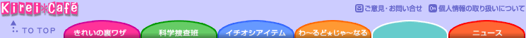 ご意見・お問い合せ プライバシーについて トップへ トップへ ニュース 科学捜査班 イチオシアイテム わーるどじゃーなる きれいの裏ワザ